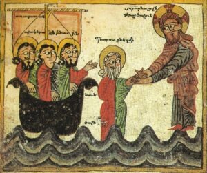 22 Alsbald drängte Jesus die Jünger, in das Boot zu steigen und vor ihm ans andere …